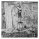 Image : 239046 Jack découpe son nom sur un faisceau dans le magasin de son ancien employeur, illustration de "Jack Sheppard : Un Romance" par William Harrison Ainsworth, édité 1839 (gravure à l'eau-forte). Cruikshank, George (1792-1878). Collection privée, la collection de Stapleton. Art, beaux-arts.