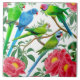 La conception originale de beaux-arts de la perruche colorée s d'animal familier du quaker aux perroquets de Ringneck d'Indien par l'artiste Carolyn McFann du studio de ronronnement de deux chats sur un carreau de céramique de qualité pour l'oiseau évente.