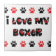 J'aime mon boxeur ! Une conception noir-blanc-et-rouge audacieuse comportant un bon nombre de coeurs et d'empreintes de pattes de chien. Grand pour tout propriétaire de boxeur qui aime leur chien.