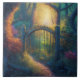 Belle carrelage décoratif présente une image d'art numérique générée par l'IA d'une porte de jardin forestier magique avec rayons de soleil rayonnant en arrière - plan.