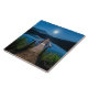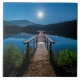 Carrelage en céramique avec une belle photo d'une jetée en bois qui s'étire sur un lac calme. Ciel nocturne couvert d'étoiles et belle pleine lune.