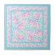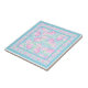 Un Carrelage en céramique carré, avec un motif de roses roses sur un arrière - plan bleu ciel, parsemé de papillons blancs. Ajoutez un cadre en bois pour faire une trivette utile et décorative !