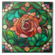 Carreau de Céramique Fleur Rose de Style Vitrail