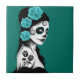 Carreau Jour bleu turquoise de la fille morte de crâne de