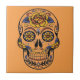 Image gothique mignonne d'un crâne mexicain aux fleurs décorées dans le style du jour des morts. Il est défini sur un arrière - plan de couleur personnalisable.