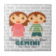 Cette tuile d'anniversaire Gemini Happy fait un cadeau d'anniversaire parfait. Personnalisez-le avec le nom et la date de naissance de l'enfant et il est prêt à partir! Illustration mignonne et moderne de l'un des 12 signes zodiaques.