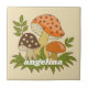 Un design amusant avec des champignons funky. Un design à revers avec des teintes vert avocat, marron et orange.