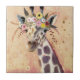 Cette impression présente une girafe douce ornée d'une couronne de fleurs | Par Victoria Borges