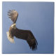 Une belle image d'aigle chauve coupant un virage acéré dans un ciel bleu brillant.