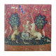 La Dame et la licorne, Vue (La Dame a la licorne, La vue) Tapisserie médiévale (vers 1500). Cette tapisserie fait partie d'une série de six. Chaque tapisserie présente une dame médiévale dans différentes poses. Chaque scène représente l'un des cinq sens, ainsi qu'une sixième scène intitulée Mon Seul Desir (mon seul désir).