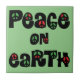 Graphique à thème de Noël mignon et significatif avec des signes de paix rouge et vert accentué dans chaque lettre. Wishing Peace on Earth... à Noël et tous les jours.