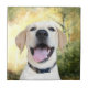 Jeune labrador retriever jaune avec un grand sourire heureux sur son carreau de céramique d'amoureux des chiens de photo de visage