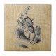 Illustration ancienne tirée du livre classique pour enfants Alice in Wonderland. Le lapin blanc est superposé sur un arrière - plan de burlap.