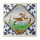 À partir de 1650 environ, ce carrelage peint à la main est doté d'une bordure audacieuse et d'un lapin trébuchant encadré de diamants. Disponible en tuiles de 4,5 et 6 pouces ainsi que d'autres articles.