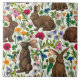 lapins et flore boisée dessinés à la main, fougères, champignons, beriies et insectes
