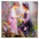 Deux filles dans un jardin fleuri, admirant une fleur de lavande. Idéal pour l'art en pépinière.