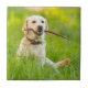 Carreau Le Labrador Jaune se rapproche avec un bâton