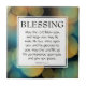 Un élégant carreau en céramique de l'Ecriture chrétienne avec un texte inspirant basé sur la bénédiction biblique dans les numéros 6:24-26, qui commence que l'Eternel VOUS BÉNISSE ET VOUS GARDE. Le design montre un motif de livres orange bleu dans l'arrière - plan. Le verset Ecriture est PERSONNALISABLE, vous pouvez ainsi changer votre version préférée de la Bible.