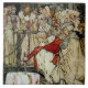 Cette tuile présente une illustration de la célèbre scène où Arthur enlève l'épée légendaire de la pierre dans laquelle elle est encastrée. Cette scène est tirée d'un numéro de 1917 d'une version abrégée du "Mort d'Arthur" de Thomas Malory avec des illustrations exquises créées par Arthur Rackham (1867-1939) dans le style pré-Raphaelite. Un merveilleux ensemble à recueillir, à donner en cadeau ou à utiliser dans le cadre d'un projet de tuiles murales. Rackham a créé 16 plaques de couleur et 7 plaques de noir et blanc ainsi que des dessins plus petits pour le livre. Nous allons ajouter d'autres designs, alors revenez pour en savoir plus.