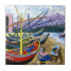 Une peinture d'artiste sur une plage de Seattle avec des bateaux de style de Van Gogh.