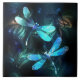 Deux libellules transparentes, lumineuses, turquoise, artistiquement dessinées sur l'arrière - plan de nuit avec des algues luminescentes et des lucioles. libellule éclatante.