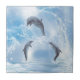 Un dauphin saute du trou d'eau dans l'océan. Ce dauphin est attendu de deux autres dauphins. Cliquez sur la Personnaliser pour personnaliser le produit cadeau!
