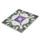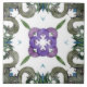 Un design arabesque en vert, bleu et violet dans le style des azulejos espagnols.