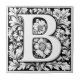 Lettre illuminée médiévale B Carrelage en céramique Un vecteur noir et blanc illustration de la lettre dans un style médiéval élaboré, créé dans le style d'Albrecht Dürer. Le design est un carré avec un grand motif floral central entouré de motifs et tourbillons géométriques symétriques.