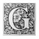 Lettre médiévale illuminée G Carrelage en céramique Un vecteur noir et blanc illustration de la lettre dans un style médiéval élaboré, créé dans le style d'Albrecht Dürer. Le design est un carré avec un grand motif floral central entouré de motifs et tourbillons géométriques symétriques.