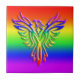 Une magnifique tuile LGBT. Il est doté d'un look gaufré, de phoenix arc-en-ciel, d'ailes étirées et montant des cendres sur un arrière - plan arc-en-ciel assorti