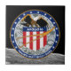 Apollo 16 était la cinquième mission du programme spatial Apollo des États-Unis pour débarquer des hommes sur la lune et les ramener sur Terre, en commençant le 16 avril 1972 avec les astronautes John Young, Thomas Mattingly et Charles Duke Jr. et en atterrissant 11 jours plus tard. Le patch d'équipage Apollo 16 est dominé par un aigle perché au sommet d'un bouclier rouge, blanc et bleu avec une feuille d'air dorée superposée sur une scène lunaire et entouré d'un cercle bleu de 16 étoiles.