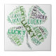 Irish fun is found in this great word art graphic. Four leaf clover silhouette with "Lucky" in various fonts and sizes