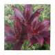 Carrelage en céramique avec une photo de Lys Asiatiques rouge foncé contre un arrière - plan de plantes Sedum vert. Un joli design floral ! Sélectionnez votre taille de tuile. Fait une grande cuisine trivet!