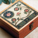 A fresh take on classic Mackintosh-inspired design, this elegant ceramic tile features stylized roses arranged like a faux stained-glass panel. Clean geometric framing, bead-chain details, and sweeping curved stems create a refined Art Nouveau look with a hint of Art Deco structure. The soft ivory background and muted palette of deep teal, sage green, and dusty blush pink are finished with warm metallic-gold outlines for a layered, dimensional effect. Perfect as a decorative wall accent, kitchen backsplash detail, bathroom feature tile, fireplace surround, or gift for lovers of vintage floral design.
