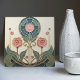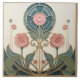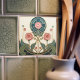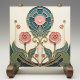 Bring timeless Art Nouveau elegance to your space with this Mackintosh-inspired floral tile. A geometric “stained glass” medallion crowns stylized roses and sweeping leaves, outlined in warm metallic-gold tones for a carved, architectural look. The refined palette of teal, sage, dusty pink, and soft ivory makes it a perfect accent for bathrooms, kitchens, fireplace surrounds, gallery walls, or decorative tile displays. A beautiful gift for lovers of Art Nouveau, Art Deco geometry, and classic botanical design.