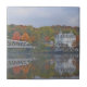 Ce carrelage présente une belle scène automnale avec reflets. La maison d'opéra Goodspeed et le pont Goodspeed sont les sujets et sont situés à East Haddam, Connecticut. Utilisez-le comme dessous de plat ou accrochez-le au mur !