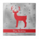 Ce design présente une majestueuse tige de renne rouge sur un arrière - plan d'étoiles brillantes en argent pour un look festif et élégant. IMPORTANT : Tapez votre nom dans la section Personnalisée.