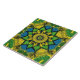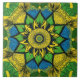 Magnifique mandala jaune, vert et bleu sur ce carrelage en céramique. L'élégance bohème.