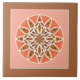 Carrelage en céramique dans un mandala motif en douze points dans les tons chocolat, bronzé, crème et corail profond avec un arrière - plan rose corail clair, bordé de caramel tan