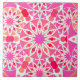 Motif de mandala à douze points dans les tons rose fuchsia, pêche et corail, bordée et accentuée de blanc