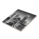Carrelage en céramique dans une illustration semi-abstraite du centre-ville de Manhattan en noir et blanc, illuminé de lumières de la ville, sous un ciel étoilé