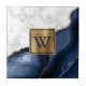 Le marbre blanc élégant et l'agate bleu marine doré avec la parties scintillant en faux or se combinent dans ce design luxueux. Personnalisez-le avec votre initiale en police marine bleu serif dans un cadre carré en métal brossé à deux bordures d'or.
