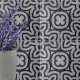 Un carrelage décoratif captivant qui dégage un charme intemporel. Le carrelage présente un motif symétrique, fleuri en noir et blanc, créant un contraste saisissant. Le design complexe, qui rappelle une fleur fleurie, est entouré d'une bordure de fines courbes courbes. Malgré son aspect patiné et les fissures et les puces visibles, la tuile conserve son charme. Son arrière - plan gris-blanc marbré met en valeur la motif, ce qui la distingue des autres. Ce carrelage n'est pas seulement un morceau de céramique, mais un témoignage de l'artisanat et de l'expression artistique exquis.