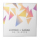 Commémorez votre journée spéciale avec ce carrelage mariage en céramique, qui comprend des confettis triangles multicolores posés sur un arrière - plan blanc. Ajoutez les noms des jeunes mariés et la date du mariage. Un grand coup de coeur pour les invités ! Design © W.H. Sim. Voir plus sur zazzle.com/expressionsoccasions