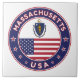 Badge du Massachusetts avec drapeau du Massachusetts et drapeau des Etats-Unis couleurs, forme arrondie. Emblème du Massachusetts. Sceau du Massachusetts. Collection USA Etats.