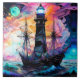 Maison phare de voilier dans les mers tempétueuses sous une pleine lune et un ciel abstrait coloré AI ART CRÉÉ PAR MINX267