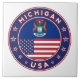 Badge du Michigan avec drapeau du Michigan et drapeau des États-Unis couleurs, forme arrondie. Emblème du Michigan. Sceau du Michigan. Collection USA Etats.