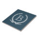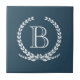 Design monogramme avec ornement de couronne de laurier sur arrière - plan bleu