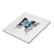 Papillon à dossier bleu avec l'aile étalée au-dessus de son ombre. Dans l'ombre a M, le m est court pour monogramme et peut être personnalisé pour votre initial.