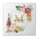 Carreau Monogramme Elegant Aquarelle Rose Floral Botanique